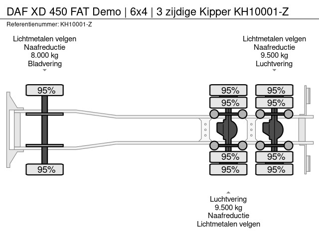 DAF XD 450 6x4 kipper met 3-zijdige KH Kipper, Afdekzeil, Voorbereiding voor trekhaak, Alcoa wielen